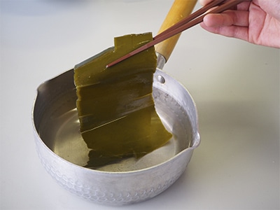 煮だし法は、昆布を水に入れて火をかける方法です。水出し法より濃い味になります。