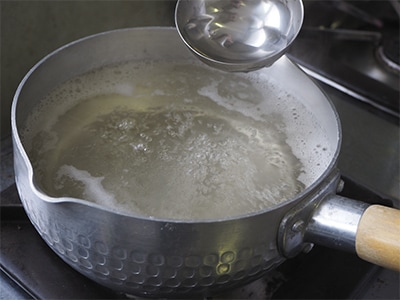 沸騰したら火からおろし、少量の差し水をし、温度を下げる。